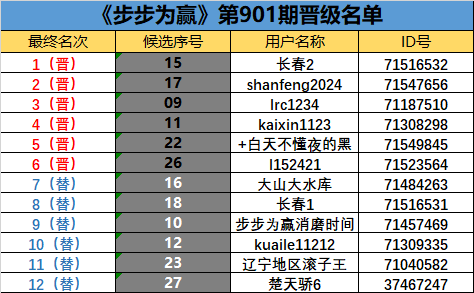 根据2025年8月28日中国福利彩票“双色球”玩法第25099奖结果,《步步为赢》第901期晋级名单已经产生。