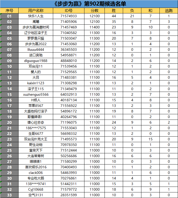 经过一周的激烈角逐,《步步为赢》第902期网络海选的33名候选选手已经揭晓。