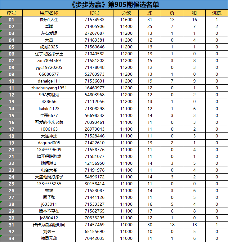 经过一周的激烈角逐,《步步为赢》第905期网络海选的33名候选选手已经揭晓。