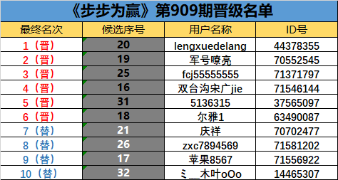 根据2025年10月23日中国福利彩票“双色球”玩法第25122奖结果,《步步为赢》第909期晋级名单已经产生。