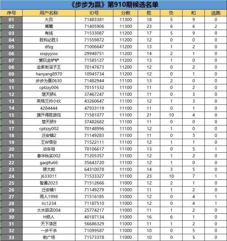 《步步为赢》第910期晋级名单公布