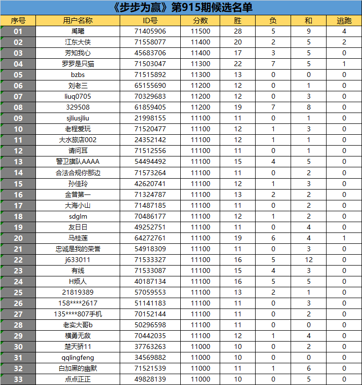 经过一周的激烈角逐,《步步为赢》第915期网络海选的33名候选选手已经揭晓。