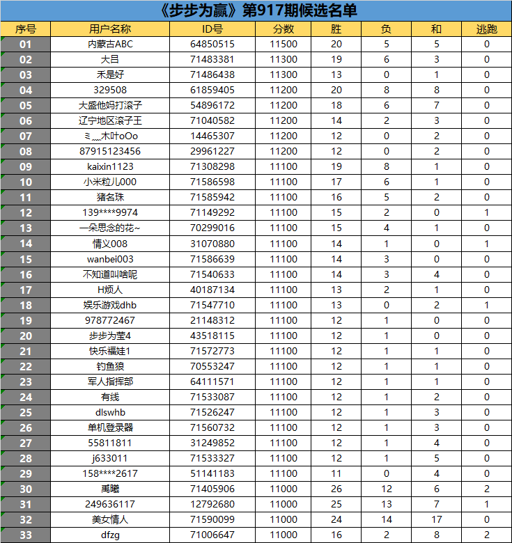 《步步为赢》第917期候选名单公布