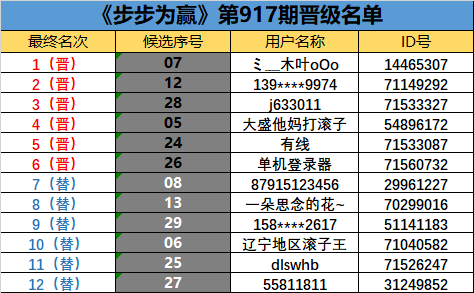 根据2025年12月18日中国福利彩票“双色球”玩法第25146奖结果,《步步为赢》第917期晋级名单已经产生。