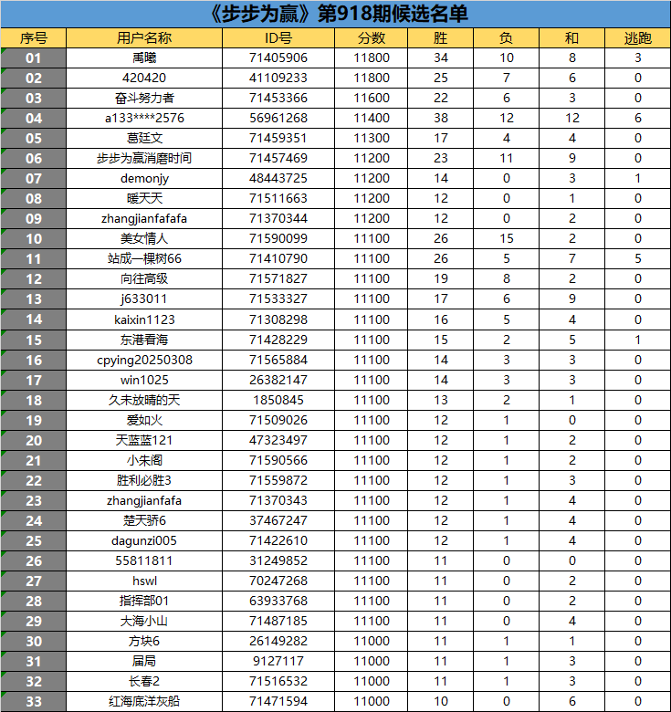 经过一周的激烈角逐,《步步为赢》第918期网络海选的33名候选选手已经揭晓。