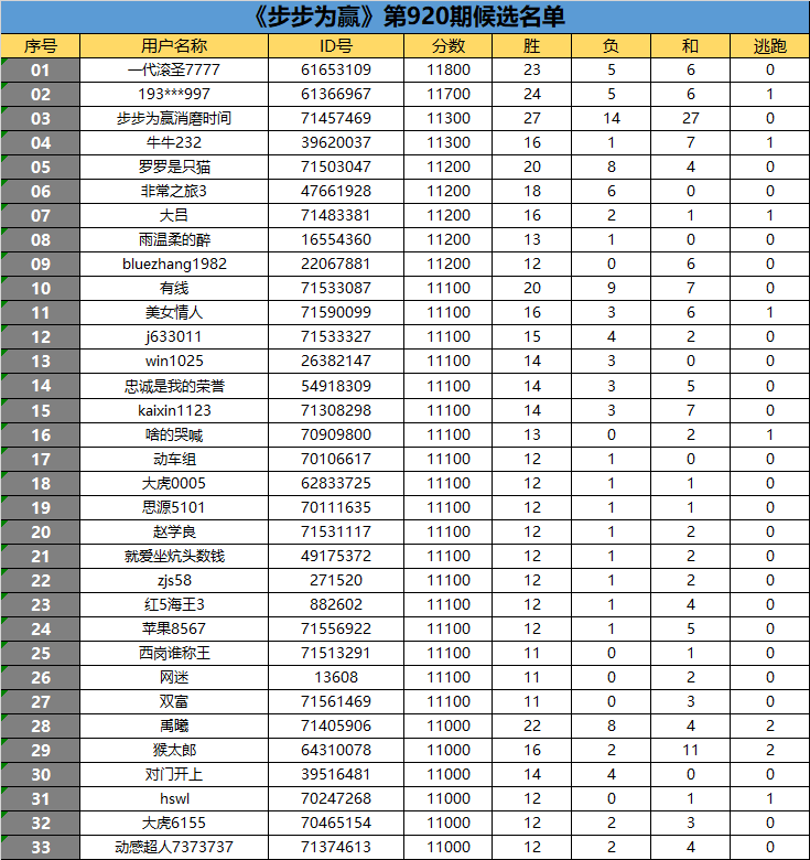 《步步为赢》第920期候选名单公布